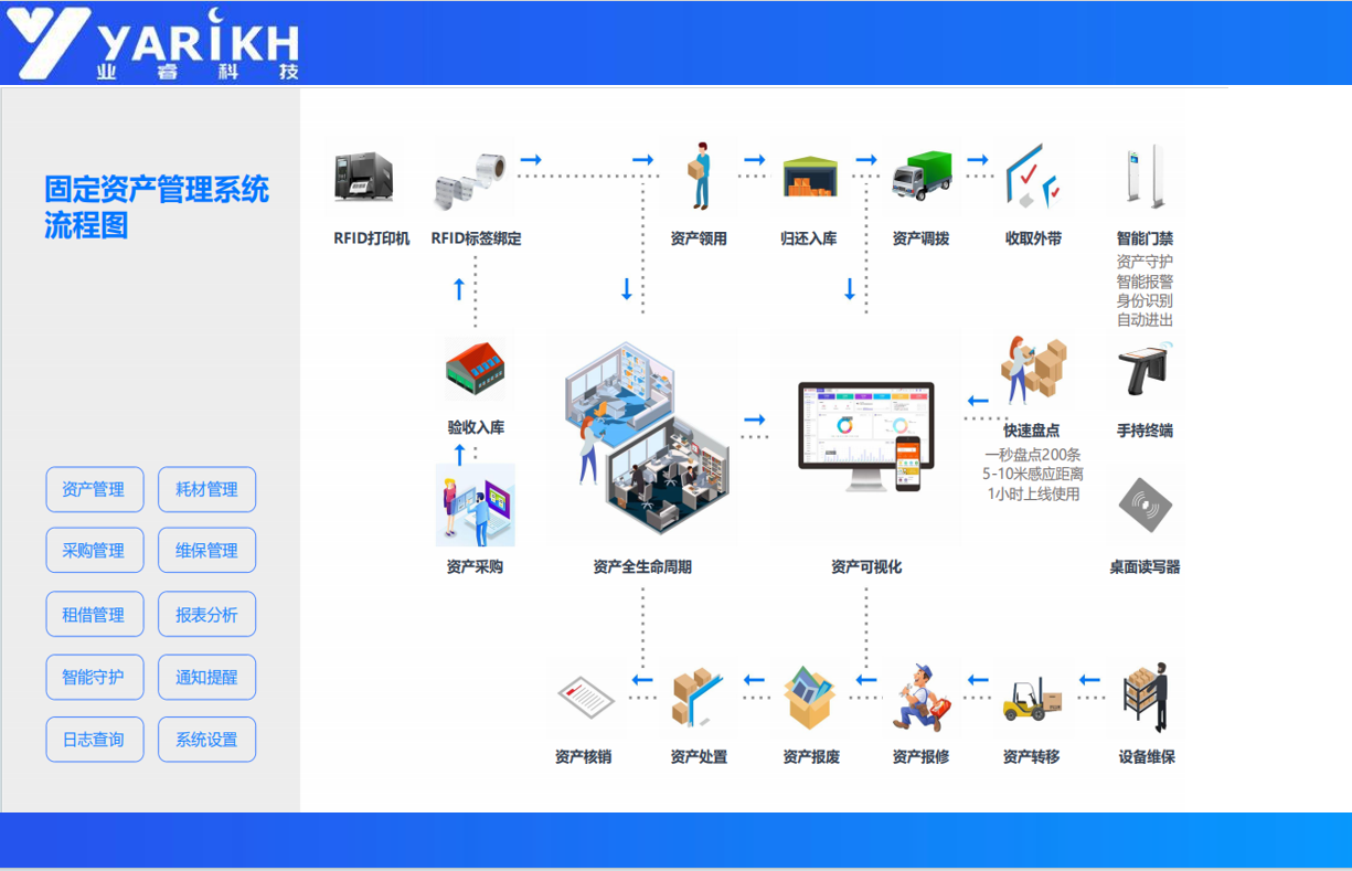 幫助客戶從資產購入、領用、變更、維修、調撥、租借、維保到報廢處理、實現全流程閉環處理,給企業管理層提供全面的資產數據分析表,