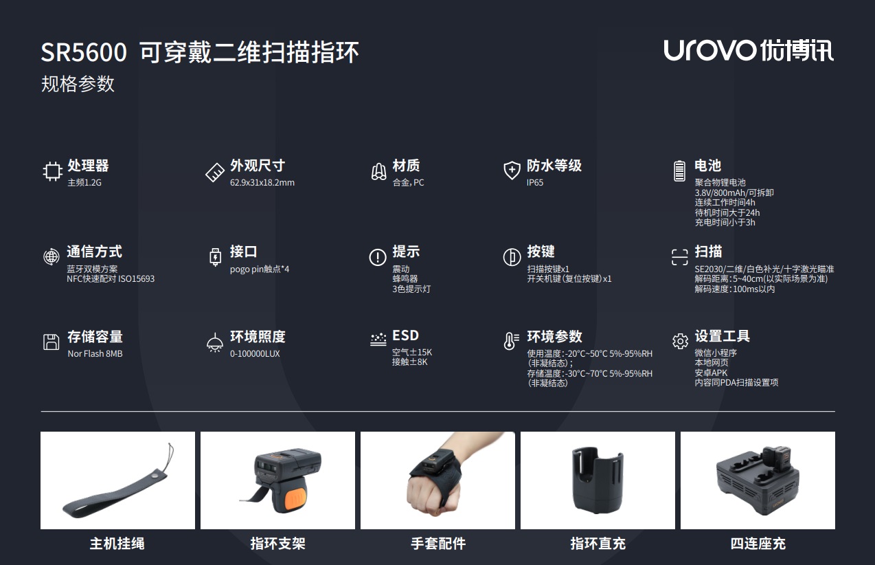 • 支持手指穿戴和手套式穿戴,提供全套工業可穿戴解決方案