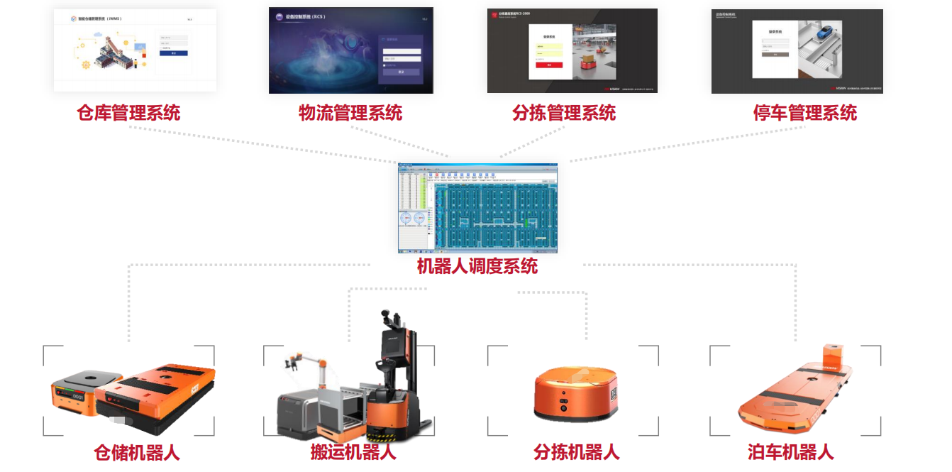 多設備集成,統一調度 : 多設備聯動對接,定制化搬運解決方案,實現 整場全場景物流自動化
